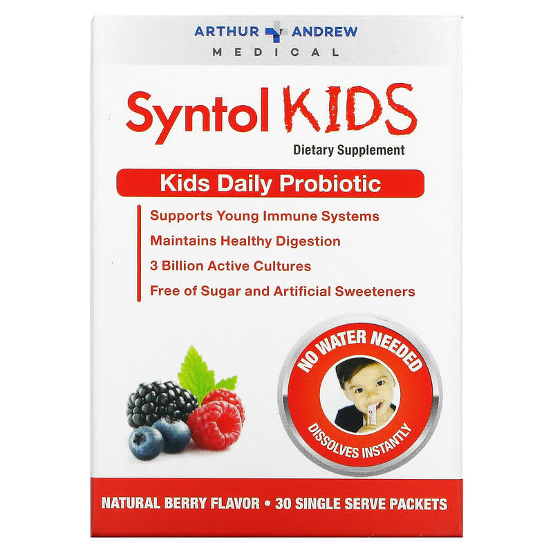 - Để Arthur Andrew Medical Syntol Kids Kids Daily Probiotic Natural Berry 30 Single Serve Packets xa tầm tay trẻ em, ngay cả khi đã cất vào hộp chứa có nắp đậy kín. Lưu ý: Tất cả các vitamin và thực phẩm chức năng Arthur Andrew Medical cho người lớn đều có thể gây hại nếu trẻ nhỏ sử dụng quá liều.