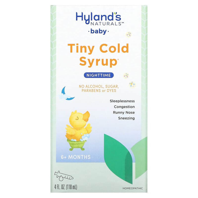 - Liều lượng Hyland’s Baby Tiny Cold Syrup Nighttime Ages 6 Months+ 4 fl oz (118 ml) áp dụng cho người lớn và không thích hợp đối với trẻ nhỏ.