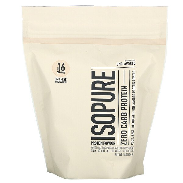 No Flavor AddedAbout 16 ServingsGMO Free2 IngredientsCook, Bake, Blend with Unflavored Protein Powder25 Grams Protein Per ServingProtein From 100% Whey Protein Isolate No Added Colors / Flavors / Sweeteners Pure, Unflavored Protein Naturally Occurring 5. 7 Grams BCAAs Per Serving* Keto-Friendly rBST Free† Whey GMO Free Gluten & Lactose FreeZero Carb / Sugar* / Fat Pure, Unflavored Protein Powder-Add to Any Recipe!The easy way to add high-quality protein into your preferred flavored beverages (hot or cold), smoothies, soups, sauces and baked goods recipes. ISOPURE® Zero Carb Protein powder contains 25 grams of GMO free and rBST free‡ 100% Whey Protein Isolate. 100% Whey Protein Isolate means exceptional purity and quality: excess fat, cholesterol, sugars, carbs, lactose and other fillers are removed to give you everything you need and nothing you don’t. And still it comes with 4. 4 grams of naturally occurring glutamine, 5. 7 grams of naturally occurring BCAAs but no added colors, flavors or sweeteners. Why Use: To help meet your daily protein intakes goals. To support muscle building and recovery when used in conjunction with weight resistance training. †No significant difference has been found between milk derived from RBST-treated and non-RBST treated cows.