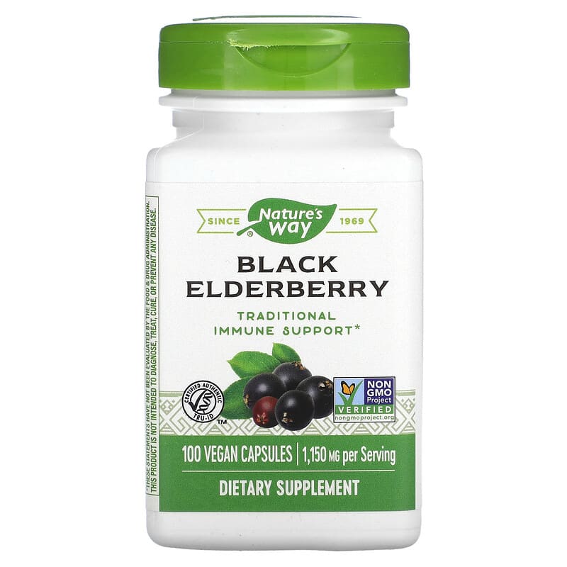 Since 1969Traditional Immune SupportCertified Authentic Tru-ID™Non GMO Project Verified1,150 mg Per ServingDietary SupplementVeganTraditional Immune SupportBlack Elderberry (also known as European Elderberry) is native to Europe and has been used to make sweet liqueurs or cordials. It has been used for centuries for traditional immune support. At Nature’s Way®, we believe nature knows best. That’s why our mission is to seek out the best herbs the earth has to give. It’s the way we deliver uncompromising quality and help you live healthier.