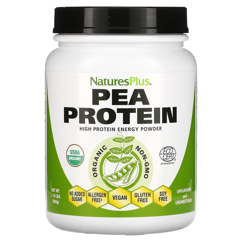 High Protein Energy PowderUSDA OrganicCertified Non-GMONo Added SugarAllergen Free‡VeganGluten FreeSoy FreeUnflavored and UnsweetenedYeast FreeCertified Organic by Ecocert IcoCertified GMP FacilityOrganic Pea Protein Mixes Instantly – No Refrigeration Required. Free From the Common Allergens Yeast, Wheat, Soy and MilkNutritional Support for Healthy Weight Management and Muscle RecoveryPrized for its superior ability to control hunger, pea protein has become a primary choice for dieters, body sculptors and athletes with strict body-weight limits. Natures Plus® Organic Pea Protein delivers the revitalizing protein you need to power your day and keep your body healthy! With its superior taste, this instant protein can be enjoyed for breakfast, lunch, dinner, or anytime you need an energy boost. This pure and natural protein comes straight from peas, allowing you to get all the natural benefits without any artificial additives. Each serving is supercharged with protein-energy-liberating enzymes, delivering the surge of vitality your body craves!Natures Plus Organic Pea Protein will make you feel fuller for longer and fits perfectly into your everyday dietary routine!Complete protein – delivers all essential amino acidsSuitable for low-glycemic dietsVeganSupercharged with protein-energy-liberating enzymes!‡Food Allergen Labeling and Consumer Protection Act Major Allergens