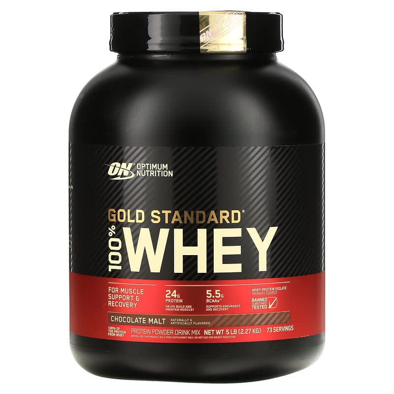 For Muscle Support & Recovery24 g Protein Helps Build and Maintain Muscle5. 5 g BCAAs** Supports Endurance and RecoveryWhey Protein Isolate Primary SourceBanned Substance TestedNaturally & Artificially Flavored100% of the Protein from WheyProtein Powder Drink MixNo Artificial Growth Hormones^Authentic Optimum Nutrition ProductInformed-Choice. org – Trusted by SportStrength TrainingSports PerformanceActive LifestyleWhy Gold Standard 100% Whey™?Packed with 24 grams of high-quality protein per serving to help build muscle. ‡Whey Protein Isolate (WPI) is the primary ingredient with further carbs and fat ´isolated´ out. 11 grams of naturally occurring Essential Amino Acids (EAAs) to support muscle recovery. The GOLD STANDARD® for protein quality, fueling over 2 billion workout recoveries worldwide since 1998. OPTIMUM® NUTRITION has been trusted to provide the highest quality in post-workout recovery, pre-workout energy, and on-the-go sports nutrition for over 30 years and in 90+ countries. After careful supplier selection, each ingredient is tested to assure exceptional purity, potency and composition. We hold ourselves to the highest production standards, all so you can unlock your body’s full potential. GOLD STANDARD 100% WHEY™ is designed for maximum mixability and superior drinkability. ^No significant difference has been shown between milk derived from RBST-treated and non-RBST treated cows. **Naturally occurring amino acids‡When taken over time with regular resistance training.