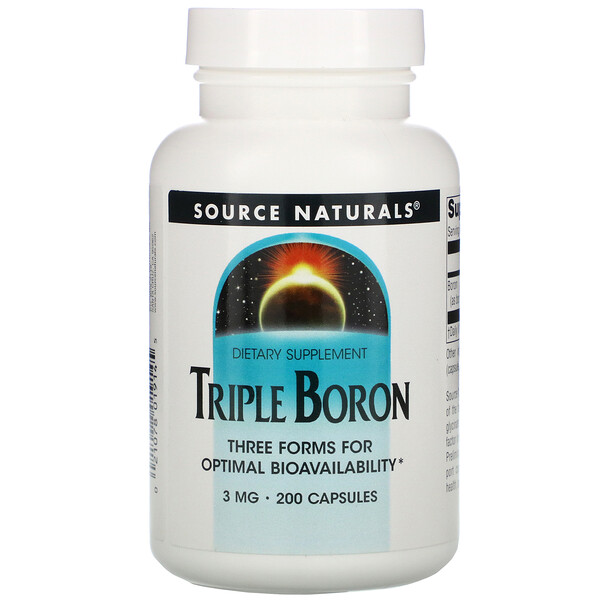 Dietary SupplementThree Forms for Enhanced BioavailabilitySource Naturals triple boron contains three forms of the trace mineral boron – citrate, aspartate, and glycinate. Preliminary studies suggest that boron is a factor in maintaining strong, healthy bones and joints. Preliminary research also suggests boron may support cognitive function in older people, prostate health, and the modulation of testosterone levels.