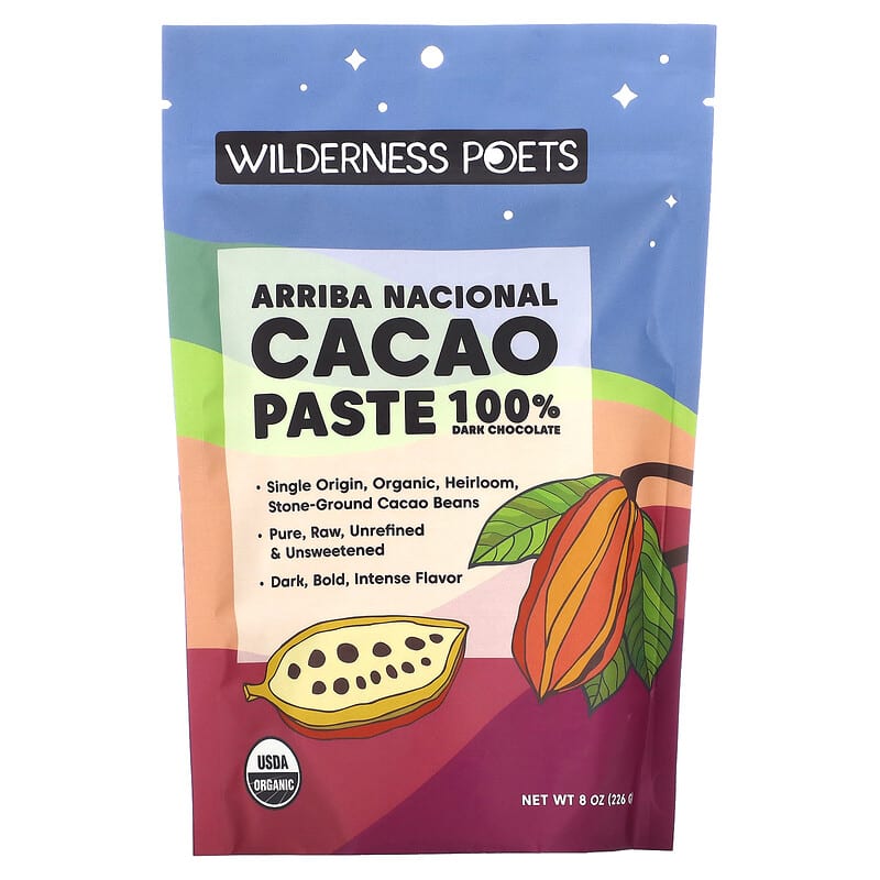 - Liều lượng Wilderness Poets LLC Organic Arriba Nacional Cacao Paste Dark Chocolate 8 oz (226 g) áp dụng cho người lớn và không thích hợp đối với trẻ nhỏ.