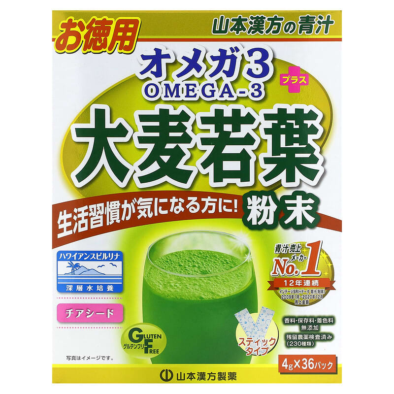 Thực phẩm chức năng Yamamoto Kanpoh Young Barley Grass Powder + Omega 3 36 Sachets 0.14 oz (4 g)
